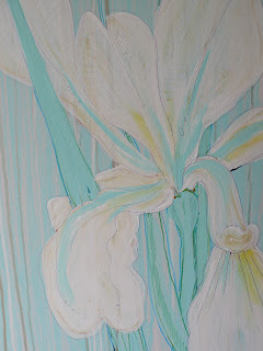 Estamos trabajando en un nuevo proyecto precioso, lleno de flores primaverales: Magnolios,iris, hortensias... Y brillos metalizados, sutiles... Os voy dando pistas...